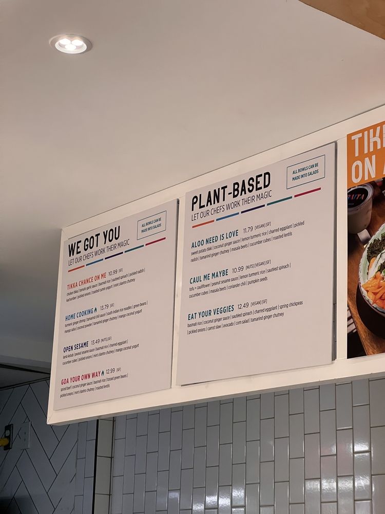 chicken tikka | romaine | arugula | harvest veggies | kachumber salad | masala beets | carrot slaw | avocado | kokum vinaigrette | toasted cumin yogurt | pumpkin seeds[gf]